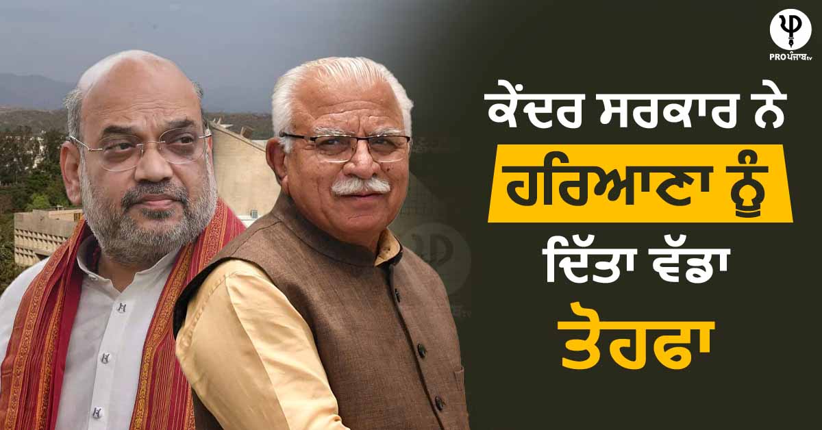 ਮੁੱਖ ਮੰਤਰੀ ਮਨੋਹਰ ਲਾਲ ਦੇ ਕਹਿਣ ‘ਤੇ ਕੇਂਦਰ ਸਰਕਾਰ ਨੇ ਹਰਿਆਣਾ ਨੂੰ ਵੱਡਾ ਤੋਹਫਾ ਦਿੱਤਾ ਹੈ।
