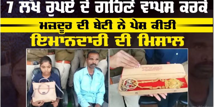 ਰਾਇਸੇਨ ‘ਚ ਮਜ਼ਦੂਰ ਦੀ 13 ਸਾਲ ਦੀ ਬੇਟੀ ਨੇ ਇਮਾਨਦਾਰੀ ਦੀ ਮਿਸਾਲ ਪੇਸ਼ ਕੀਤੀ ਹੈ।ਬੇਟੀ 6ਵੀਂ ਜਮਾਤ ‘ਚ ਪੜਦੀ ਹੈ।ਪਿਤਾ ਮਜ਼ਦੂਰੀ ਕਰਕੇ 200 ਰੁਪਏ ਰੋਜ਼ ਕਮਾ ਕੇ ਪਰਿਵਾਰ ਦਾ ਪਾਲਨ-ਪੋਸ਼ਣ ਕਰਦੇ ਹਨ।ਬੇਟੀ ਨੂੰ ਉਨ੍ਹਾਂ ਨੇ ਜੋ ਸੰਸਕਾਰ ਦਿੱਤੇ, ਉਸਦੀ ਤਾਰੀਫ ਹੋ ਰਹੀ ਹੈ।ਬੇਟੀ ਨੂੰ ਜਦੋਂ 7 ਲੱਖ ਰੁਪਏ ਦੇ ਗਹਿਣਿਆਂ ਨਾਲ ਭਰਿਆ ਬੈਗ ਮਿਲਿਆ ਤਾਂ ਉਸਦਾ ਈਮਾਨ ਨਹੀਂ ਡਗਮਗਾਇਆ।