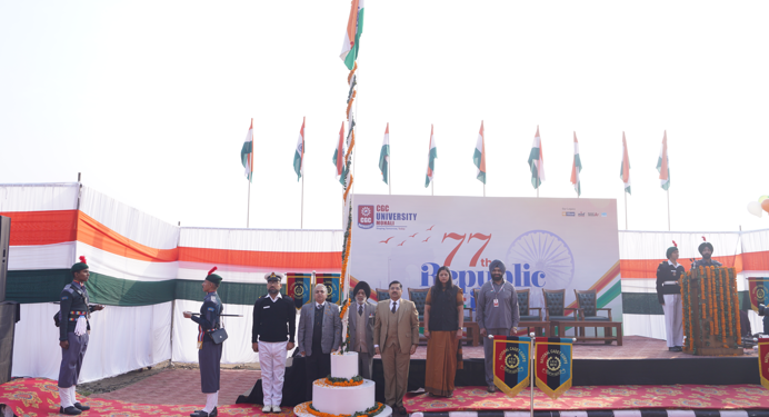 ਸੀਜੀਸੀ ਯੂਨੀਵਰਸਿਟੀ, ਮੋਹਾਲੀ, ਨੇ ਭਾਰਤ ਦੇ 77ਵੇਂ ਗਣਤੰਤਰ ਦਿਵਸ ਨੂੰ ਸ਼ਾਨਦਾਰ ਅਤੇ ਜੀਵੰਤ ਦੇਸ਼ ਭਗਤੀ ਨਾਲ ਮਨਾਇਆ ਅਤੇ ਕੈਂਪਸ ਨੂੰ ਰਾਸ਼ਟਰੀ ਸਵੈਮਾਣ, ਏਕਤਾ ਅਤੇ ਲੋਕਤੰਤਰੀ ਭਾਵਨਾ ਦੇ ਇੱਕ ਜੀਵੰਤ ਨਮੂਨੇ ਵਿੱਚ ਬਦਲ ਦਿੱਤਾ। ਸਮਾਗਮ ਦੌਰਾਨ ਰਾਸ਼ਟਰੀ ਏਕਤਾ, ਸੰਵਿਧਾਨਕ ਮੁੱਲਾਂ ਅਤੇ ਲੋਕਤੰਤਰਕ ਆਦਰਸ਼ਾਂ ਨੂੰ ਕੇਂਦਰ ਵਿੱਚ ਰੱਖਿਆ ਗਿਆ।