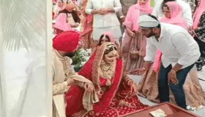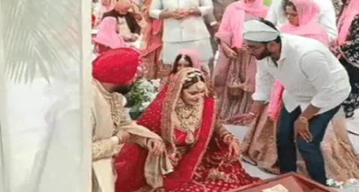 abhishek sharma sister marriage: ਕ੍ਰਿਕਟਰ ਅਭਿਸ਼ੇਕ ਸ਼ਰਮਾ ਦੀ ਭੈਣ ਕੋਮਲ ਸ਼ਰਮਾ ਨੇ ਅੱਜ ਪੰਜਾਬ ਦੇ ਅੰਮ੍ਰਿਤਸਰ ਵਿੱਚ ਕਾਰੋਬਾਰੀ ਲਵਿਸ਼ ਓਬਰਾਏ ਨਾਲ ਵਿਆਹ ਕਰਵਾ ਲਿਆ। ਇਸ ਜੋੜੇ ਨੇ ਵੇਰਕਾ ਬਾਈਪਾਸ ‘ਤੇ ਸਥਿਤ ਗੁਰਦੁਆਰਾ ਬਾਬਾ ਸ਼੍ਰੀ ਚੰਦ ਜੀ ਟਾਹਲੀ ਸਾਹਿਬ ਵਿਖੇ ਲਾਵਾਂ ਫੇਰਾ ਪਾਇਆ। ਇਸ ਤੋਂ ਬਾਅਦ ਉਹ ਫੈਸਟਿਨ ਰਿਜ਼ੋਰਟ ਗਏ, ਜਿੱਥੇ ਦੁਪਹਿਰ ਦਾ ਖਾਣਾ ਅਤੇ ਨਾਚ ਦਾ ਪ੍ਰੋਗਰਾਮ ਚੱਲ ਰਿਹਾ ਸੀ। ਮੁੱਖ ਮੰਤਰੀ ਭਗਵੰਤ ਮਾਨ ਨੇ ਵੀ ਇਸ ਸਮਾਗਮ ਵਿੱਚ ਸ਼ਿਰਕਤ ਕੀਤੀ। ਇਸ ਤੋਂ ਪਹਿਲਾਂ ਸਾਬਕਾ ਕ੍ਰਿਕਟਰ ਨਵਜੋਤ ਸਿੰਘ ਸਿੱਧੂ ਅਤੇ ਸੰਸਦ ਮੈਂਬਰ ਔਜਲਾ ਪਹੁੰਚੇ।