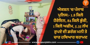 Read morePunjab Police's Operation Clean: ਮੁੱਖ ਮੰਤਰੀ ਭਗਵੰਤ ਮਾਨ ਦੇ ਦਿਸ਼ਾ ਨਿਰਦੇਸ਼ਾਂ ਮੁਤਾਬਕ ਪੰਜਾਬ ਨੂੰ ਨਸ਼ਾ ਮੁਕਤ ਸੂਬਾ ਬਣਾਉਣ ਲਈ ਚੱਲ...