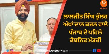 Read moreLaljit Singh Bhullar Donate Eyes: ਪੰਜਾਬ ਦੇ ਟਰਾਂਸਪੋਰਟ ਮੰਤਰੀ ਲਾਲਜੀਤ ਸਿੰਘ ਭੁੱਲਰ ਆਪਣੀਆਂ ਅੱਖਾਂ ਦਾਨ ਕਰਨ ਸਬੰਧੀ ਪ੍ਰਣ ਲੈਣ ਵਾਲੇ...