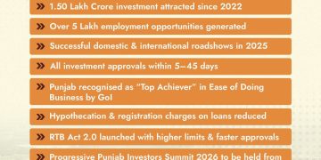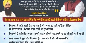 Read moreਮੁੱਖ ਮੰਤਰੀ ਭਗਵੰਤ ਸਿੰਘ ਮਾਨ ਦੀ ਅਗਵਾਈ ਵਾਲੀ ਪੰਜਾਬ ਸਰਕਾਰ ਦੀਆਂ ਪਹਿਲਕਦਮੀਆਂ ਸਦਕਾ ਸਾਲ 2025 ਵਿੱਚ ਪੰਜਾਬ ਦੇ ਖੇਤੀਬਾੜੀ ਖੇਤਰ ਵਿੱਚ ਸਕਾਰਾਤਮਕ ਬਦਲਾਅ ਆਏ ਹਨ। ਇਸ ਸਾਲ ਸੂਬਾ ਸਰਕਾਰ ਵੱਲੋਂ...