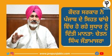 Read moreChandigarh : ਮੁੱਖ ਮੰਤਰੀ ਭਗਵੰਤ ਮਾਨ ਦੀ ਅਗਵਾਈ ਹੇਠ ਪੰਜਾਬ ਆਪਣੇ ਸਿਹਤ ਸੂਚਕਾਂ ਵਿੱਚ ਲਗਾਤਾਰ ਸੁਧਾਰ ਕਰ ਰਿਹਾ ਹੈ। ਸਿਹਤ ਖੇਤਰ ਵਿੱਚ ਪੰਜਾਬ ਨੂੰ ਮੋਹਰੀ ਸੂਬਾ ਬਣਾਉਣ ਸਬੰਧੀ ਪੰਜਾਬ ਸਰਕਾਰ...