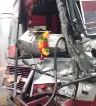 ਇਸੇ ਦੌਰਾਨ ਧੁੰਦ ਕਾਰਨ ਪਿੱਛੇ ਤੋਂ ਆ ਰਹੀ ਪੰਜਾਬ ਰੋਡਵੇਜ਼ ਜਲੰਧਰ ਡਿਪੂ-1 ਦੀ ਬੱਸ ਦੇ ਡਰਾਈਵਰ ਨੂੰ ਟਰੱਕ ਦਾ ਸਹੀ ਅੰਦਾਜ਼ਾ ਨਹੀਂ ਲੱਗ ਸਕਿਆ ਅਤੇ ਬੱਸ ਟਰੱਕ ਨਾਲ ਜਾ ਟਕਰਾਈ।
