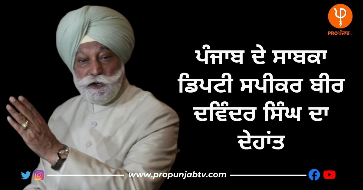 Former Deputy Speaker Punjab Bir Devinder Singh Passed away: ਪੰਜਾਬ ਸਾਬਕਾ ਡਿਪਟੀ ਸਪੀਕਰ ਬੀਰ ਦਵਿੰਦਰ ਸਿੰਘ ਦਾ ਦੇਹਾਂਤ ਹੋ ਗਿਆ ਹੈ। ਦੱਸ ਦਈਏ ਕਿ ਉਹ ਲੰਬੇ ਸਮੇਂ ਤੋਂ ਬਿਮਾਰ ਸੀ ਤੇ ਪੀਜੀਆਈ ‘ਚ ਦਾਖਲ ਸੀ।