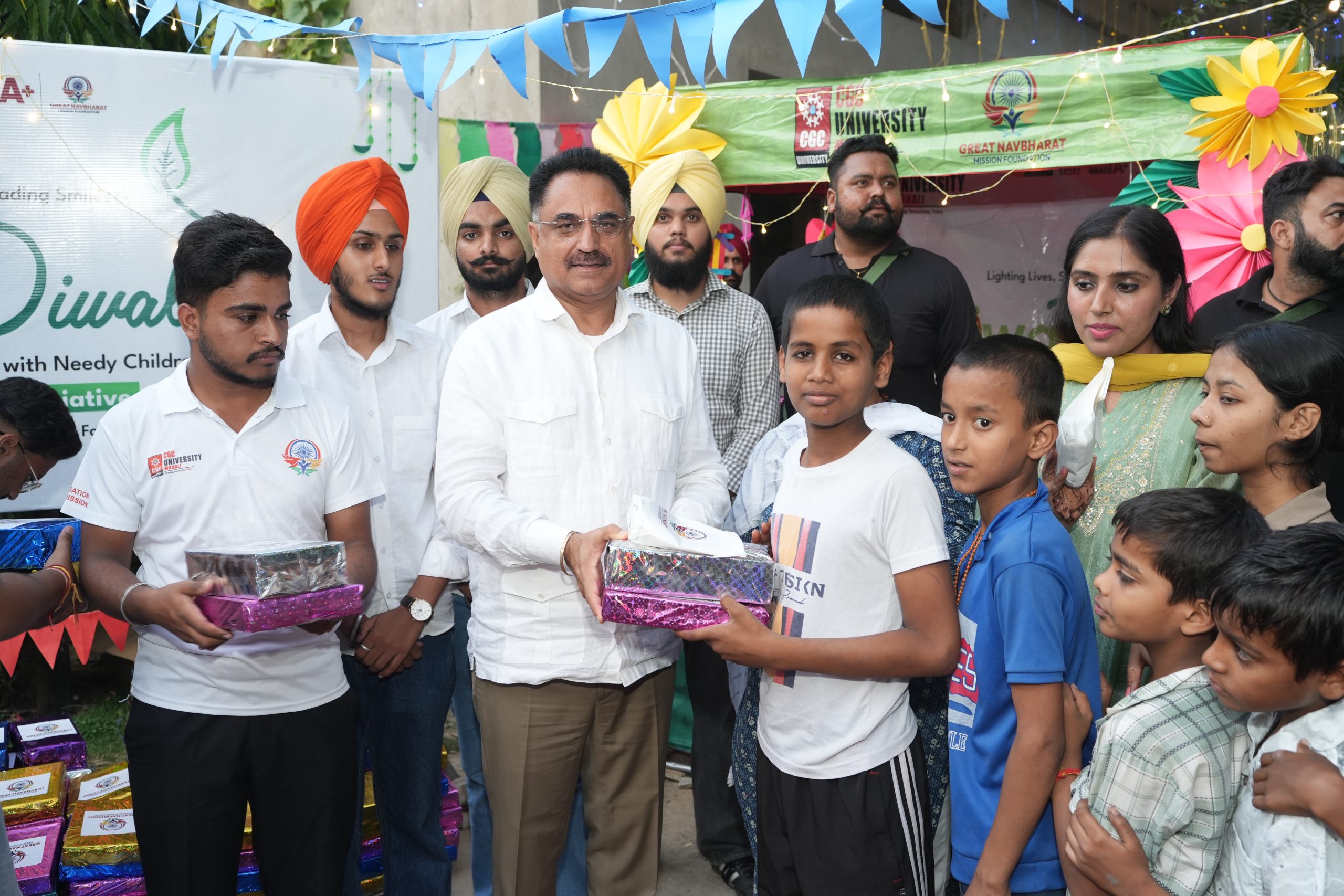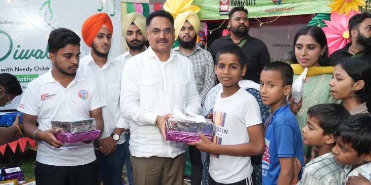 ਚੰਡੀਗੜ੍ਹ ਦੇ ਰਾਮ ਦਰਬਾਰ ਪਬਲਿਕ ਪਾਰਕ ‘ਚ ਦ ਗ੍ਰੇਟ ਨਵਭਾਰਤ ਮਿਸ਼ਨ ਫਾਊਂਡੇਸ਼ਨ ਵੱਲੋਂ “ਰੌਸ਼ਨੀ ਵਾਲੀ ਦੀਵਾਲੀ: ਗਰੀਬ ਬੱਚਿਆਂ ਨਾਲ ਹਰੀ ਭਰੀ ਦੀਵਾਲੀ ਦਾ ਜਸ਼ਨ” ਮਨਾਇਆ ਗਿਆ। ਇਹ ਸਮਾਗਮ ਸੀਜੀਸੀ ਯੂਨੀਵਰਸਿਟੀ, ਮੋਹਾਲੀ ਦੇ ਮਾਣਯੋਗ ਫਾਊਂਡਰ ਚਾਂਸਲਰ ਸ. ਰਸ਼ਪਾਲ ਸਿੰਘ ਢਾਲੀਵਾਲ ਜੀ ਦੇ ਉੱਚ ਆਦਰਸ਼ਾਂ ਤੇ ਮਾਰਗਦਰਸ਼ਨ ਹੇਠ ਆਯੋਜਿਤ ਕੀਤਾ ਗਿਆ। ਇਹ ਪਹਿਲ ਇਸ ਵਿਸ਼ਵਾਸ ਦੀ ਪ੍ਰਤੀਕ ਸੀ ਕਿ ਦੀਵਾਲੀ ਦੀ ਅਸਲੀ ਖੁਸ਼ੀ ਸਜਾਵਟਾਂ ਜਾਂ ਚਮਕ ਵਿੱਚ ਨਹੀਂ, ਸਗੋਂ ਉਸ ਖੁਸ਼ੀ ਵਿੱਚ ਵੱਸਦੀ ਹੈ ਜੋ ਅਸੀਂ ਹੋਰਾਂ ਦੇ ਚਿਹਰਿਆਂ ‘ਤੇ ਲਿਆਉਂਦੇ ਹਾਂ।