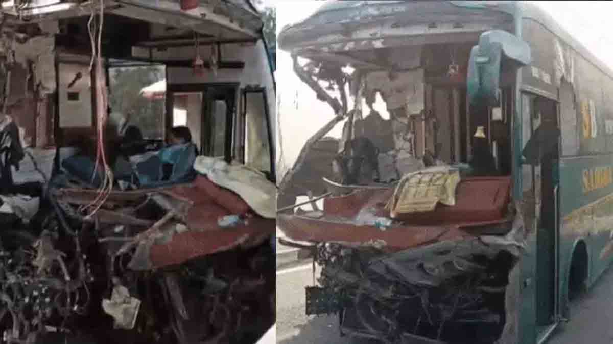 ਜਲੰਧਰ-ਜੰਮੂ ਰਾਸ਼ਟਰੀ ਰਾਜਮਾਰਗ ‘ਤੇ ਸਵੇਰੇ ਤੜਕੇ ਇੱਕ ਭਿਆਨਕ ਸੜਕ ਹਾਦਸਾ ਵਾਪਰਿਆ। ਦਿੱਲੀ ਤੋਂ ਜੰਮੂ ਜਾ ਰਹੀ ਇੱਕ ਡਬਲ-ਡੈਕਰ ਸੈਲਾਨੀ ਬੱਸ ਉੱਚੀ ਬੱਸੀ ਦੇ ਨੇੜੇ ਲੱਕੜ ਨਾਲ ਭਰੇ ਇੱਕ ਸਾਹਮਣੇ ਤੋਂ ਆ ਰਹੇ ਟਰੱਕ ਨਾਲ ਟਕਰਾ ਗਈ। ਟੱਕਰ ਇੰਨੀ ਭਿਆਨਕ ਸੀ ਕਿ ਬੱਸ ਦੇ ਅਗਲੇ ਪਹੀਏ ਬਾਹਰ ਨਿਕਲ ਗਏ ਅਤੇ ਬੱਸ ਹਾਈਵੇਅ ਰੇਲਿੰਗ ‘ਤੇ ਚੜ੍ਹ ਗਈ।