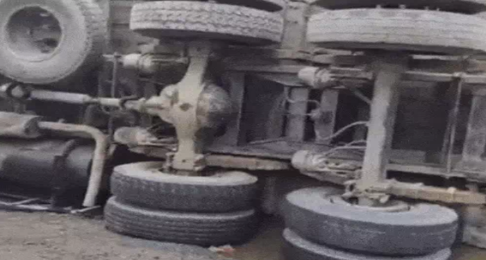 jalandhar city truck accident : ਵੀਰਵਾਰ ਨੂੰ ਜਲੰਧਰ ਦੇ ਫੋਕਲ ਪੁਆਇੰਟ ਨੇੜੇ ਇੱਕ ਡੂੰਘੇ ਟੋਏ ਵਿੱਚ ਫਸਣ ਤੋਂ ਬਾਅਦ ਝੋਨੇ ਨਾਲ ਭਰਿਆ ਇੱਕ ਟਰੱਕ ਪਲਟ ਗਿਆ। ਟਰੱਕ ਡਰਾਈਵਰ ਨੂੰ ਮਾਮੂਲੀ ਸੱਟਾਂ ਲੱਗੀਆਂ। ਸਥਾਨਕ ਲੋਕਾਂ ਨੇ ਕਾਫ਼ੀ ਕੋਸ਼ਿਸ਼ਾਂ ਤੋਂ ਬਾਅਦ ਉਸਨੂੰ ਸੁਰੱਖਿਅਤ ਬਾਹਰ ਕੱਢ ਲਿਆ। ਟਰੱਕ ਵਿੱਚ ਝੋਨੇ ਦੀਆਂ ਬੋਰੀਆਂ ਲੱਦੀਆਂ ਹੋਈਆਂ ਸਨ। ਬੋਰੀਆਂ ਸੜਕ ‘ਤੇ ਡਿੱਗ ਗਈਆਂ ਅਤੇ ਮੀਂਹ ਦੇ ਪਾਣੀ ਵਿੱਚ ਭਿੱਜ ਗਈਆਂ।