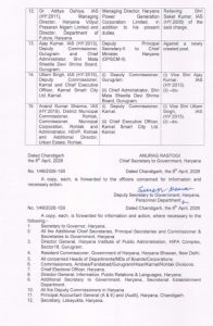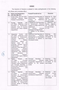 ਹਰਿਆਣਾ ਸਰਕਾਰ ਨੇ ਭਾਰਤੀ ਪ੍ਰਸ਼ਾਸਨਿਕ ਸੇਵਾ ਦੇ 15 ਅਧਿਕਾਰੀਆਂ ਦੇ ਤਬਾਦਲੇ ਕੀਤੇ ਗਏ ਹਨ