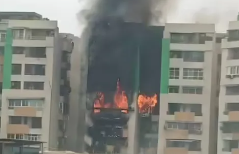 ਦਿੱਲੀ ਦੀ ਸਰਹੱਦ ਨਾਲ ਲੱਗਦੇ ਸ਼ਹਿਰ ਗਾਜ਼ੀਆਬਾਦ ਵਿੱਚ ਗ੍ਰੀਨ ਐਵੇਨਿਊ ਸੋਸਾਇਟੀ ਦੀ ਨੌਵੀਂ ਮੰਜ਼ਿਲ ‘ਤੇ ਸਥਿਤ ਇੱਕ ਫਲੈਟ ਵਿੱਚ ਬੁੱਧਵਾਰ ਸਵੇਰੇ ਭਿਆਨਕ ਅੱਗ ਲੱਗ ਗਈ।