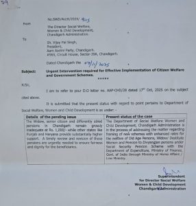 ਚੰਡੀਗੜ੍ਹ ਵਿੱਚ ਬੁਢਾਪਾ, ਵਿਧਵਾ ਅਤੇ ਅਪੰਗਤਾ ਪੈਨਸ਼ਨਾਂ ਵਿੱਚ ਜਲਦ ਹੀ ਵਾਧਾ ਕੀਤਾ ਜਾਵੇਗਾ।