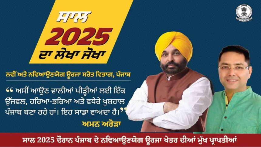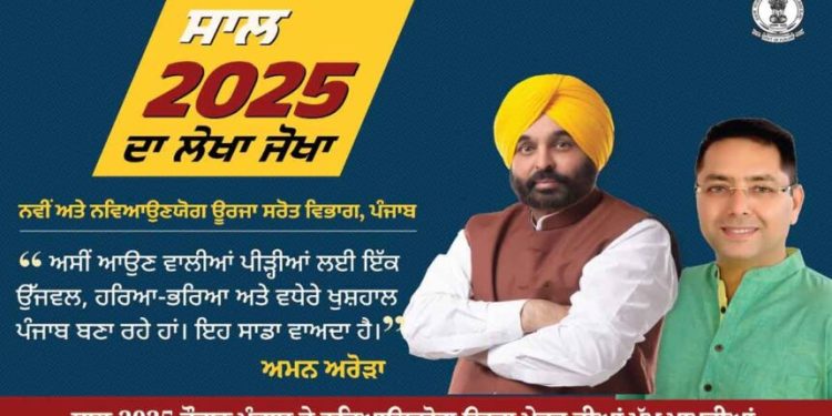 ਪੰਜਾਬ ਦੇ ਨਵੇਂ ਅਤੇ ਨਵਿਆਉਣਯੋਗ ਊਰਜਾ ਸਰੋਤ ਮੰਤਰੀ, ਅਮਨ ਅਰੋੜਾ ਨੇ ਸਾਲ 2025 ਦੌਰਾਨ ਨਵਿਆਉਣਯੋਗ ਖੇਤਰ ਵਿੱਚ ਹੋਈ ਬੇਮਿਸਾਲ ਪ੍ਰਗਤੀ ‘ਤੇ ਚਾਨਣਾ ਪਾਇਆ, ਇਹ ਦੱਸਦੇ ਹੋਏ ਕਿ ਪੰਜਾਬ ਊਰਜਾ ਵਿਕਾਸ ਏਜੰਸੀ (ਪੇਡਾ) ਖੇਤੀਬਾੜੀ ਰਹਿੰਦ-ਖੂੰਹਦ ਅਤੇ ਸੂਰਜੀ ਊਰਜਾ ਦੀ ਵਰਤੋਂ ਰਾਹੀਂ ਪੰਜਾਬ ਨੂੰ ਇੱਕ ਉੱਜਵਲ ਅਤੇ ਸਿਹਤਮੰਦ ਭਵਿੱਖ ਵੱਲ ਲੈ ਜਾ ਰਹੀ ਹੈ। ਉਨ੍ਹਾਂ ਕਿਹਾ ਕਿ ਘਰਾਂ ਅਤੇ ਖੇਤਾਂ ਨੂੰ ਹੁਣ ਸੂਰਜ ਤੋਂ ਊਰਜਾ ਮਿਲ ਰਹੀ ਹੈ; ਖੇਤੀਬਾੜੀ ਰਹਿੰਦ-ਖੂੰਹਦ ਨੂੰ ਸਾਫ਼ ਬਾਲਣ ਵਜੋਂ ਵਰਤਿਆ ਜਾ ਰਿਹਾ ਹੈ।