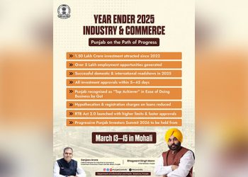 ਚੰਡੀਗੜ੍ਹ : ਕੈਬਨਿਟ ਮੰਤਰੀ ਸੰਜੀਵ ਅਰੋੜਾ ਨੇ ਕਿਹਾ ਕਿ ‘ਆਪ’ ਸਰਕਾਰ ਦੇ ਸੱਤਾ ਸੰਭਾਲਣ ਤੋਂ ਬਾਅਦ ਹੁਣ ਤੱਕ ਪੰਜਾਬ ਰਾਜ ਵਿੱਚ 1.50 ਲੱਖ ਕਰੋੜ ਰੁਪਏ (ਲਗਭਗ 19 ਬਿਲੀਅਨ ਅਮਰੀਕੀ ਡਾਲਰ) ...