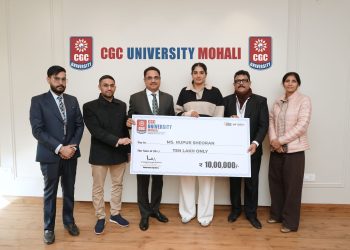 ਸੀਜੀਸੀ ਯੂਨੀਵਰਸਿਟੀ, ਮੋਹਾਲੀ ਵੱਲੋਂ ਵਰਲਡ ਕੱਪ ਸਵਰਨ ਪਦਕ ਜੇਤੂ ਨੂਪੁਰ ਨੂੰ 10 ਲੱਖ ਰੁਪਏ ਨਕਦ ਇਨਾਮ