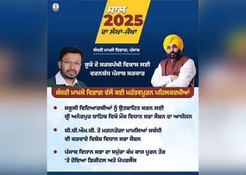 ਚੰਡੀਗੜ੍ਹ, 31 ਦਸੰਬਰ : ਪੰਜਾਬ ਦਾ ਪ੍ਰਸ਼ਾਸਨ ਸਾਲ 2025 ਦੌਰਾਨ ਵੱਡੇ ਡਿਜੀਟਲ ਬਦਲਾਅ ਦਾ ਗਵਾਹ ਬਣਿਆ ਹੈ, ਜਿਸ ਤਹਿਤ ਹੁਣ ਨਾਗਰਿਕ-ਕੇਂਦਰਿਤ ਸੇਵਾਵਾਂ ਲੋਕਾਂ ਨੂੰ ਸਿੱਧੇ ਉਨ੍ਹਾਂ ਦੇ ਦਰ ‘ਤੇ ਹੀ ...