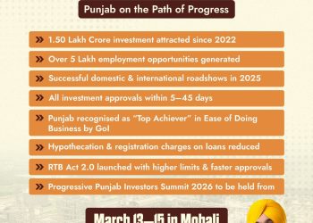 ਪ੍ਰਗਤੀਸ਼ੀਲ ਪੰਜਾਬ ਨਿਵੇਸ਼ਕ ਸੰਮੇਲਨ-2026: 2022 ਤੋਂ ਪੰਜਾਬ ਵਿੱਚ 1.50 ਲੱਖ ਕਰੋੜ ਰੁਪਏ ਦਾ ਨਿਵੇਸ਼, 5 ਲੱਖ ਤੋਂ ਵੱਧ ਰੋਜ਼ਗਾਰ ਦੇ ਮੌਕੇ ਮਿਲੇ