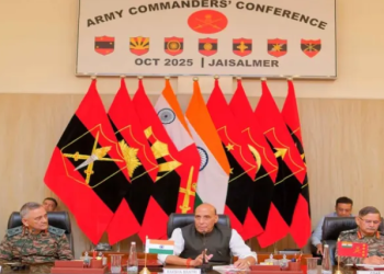 ਰੱਖਿਆ ਮੰਤਰੀ ਰਾਜਨਾਥ ਸਿੰਘ, ਜੋ ਕਿ ਜੈਸਲਮੇਰ ਦੇ ਦੌਰੇ 'ਤੇ ਹਨ, ਨੇ ਸ਼ੁੱਕਰਵਾਰ ਨੂੰ ਇੱਥੇ ਆਰਮੀ ਕਮਾਂਡਰਾਂ ਦੀ ਕਾਨਫਰੰਸ ਦੌਰਾਨ ਸੁਰੱਖਿਆ ਸਥਿਤੀ ਅਤੇ ਭਾਰਤੀ ਫੌਜ ਦੀ ਸੰਚਾਲਨ ਤਿਆਰੀ ਦੀ ਸਮੀਖਿਆ ...